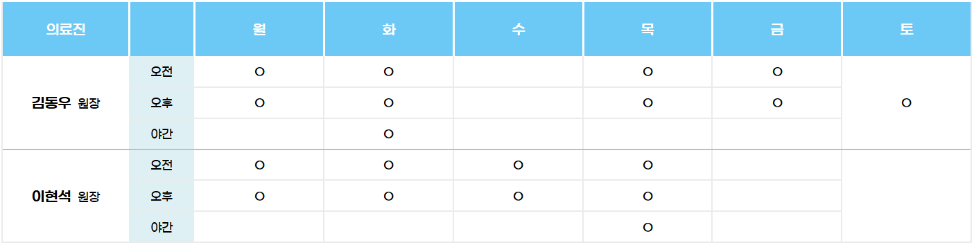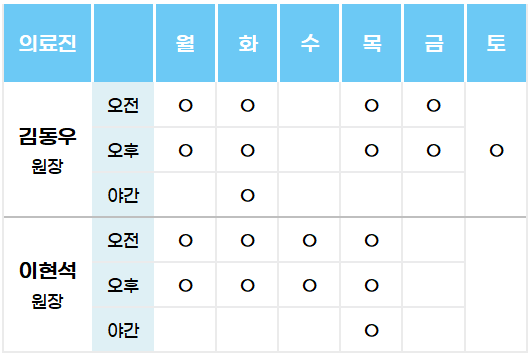 의료시간과 원장님 진료 스케쥴을 알려드립니다.